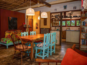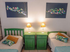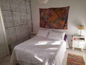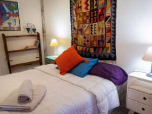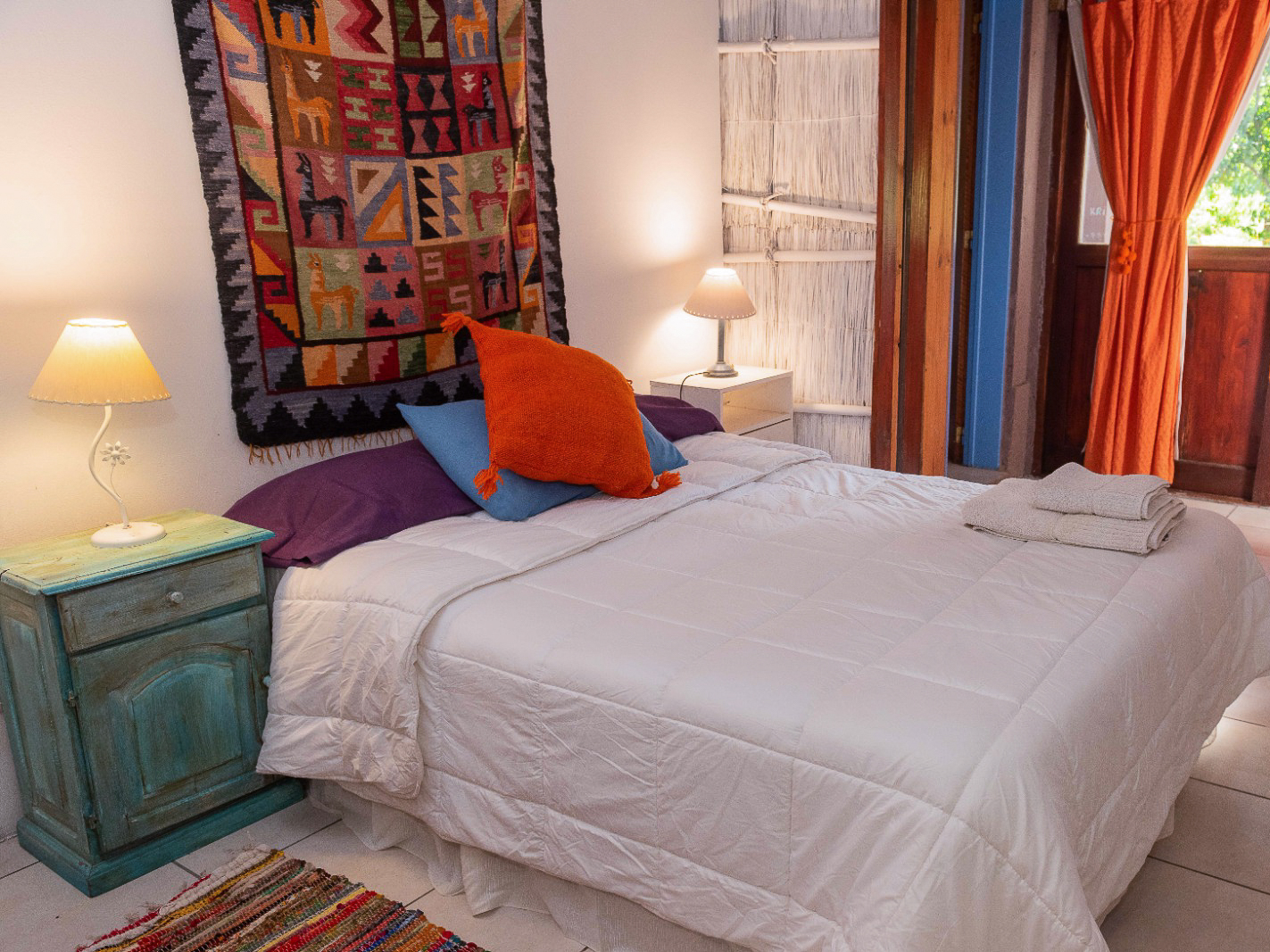 Habitaciones matrimoniales y dobles, amplias y luminosas con baño privado. WiFi, cocina completa con utensilios y vajilla, Comedor y sala de estar espaciosos y acojedores. Construcciòn natural y deco ecléctica.